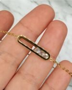 The Lumina Glide bracelet is designed to dazzle with grace in motion. Set in solid silver, a sleek diamond bar holds a cascade of free-moving moissanite stones that shimmer and shift with every subtle gesture.