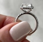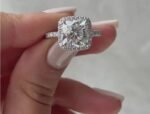 The Solenya Halo is designed to illuminate every moment. At its center, a brilliant cushion-cut moissanite is cradled in a shimmering halo of pavé-set stones, amplifying its fire and creating a soft, star-like glow. The moissanite’s pillowed shape and exceptional sparkle offer a timeless elegance with a modern edge.